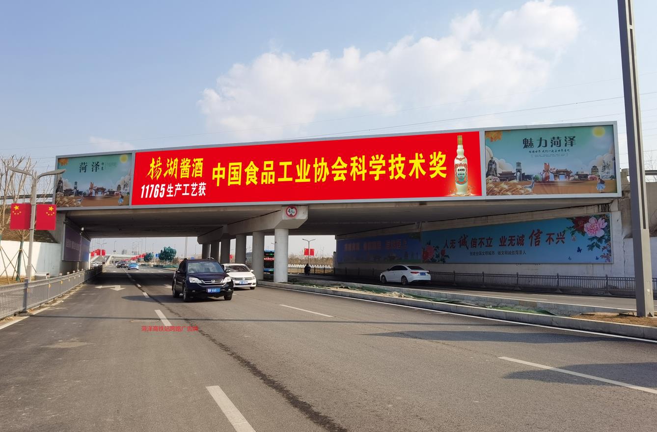 媒體位置:菏澤高鐵站南側(cè)跨路噴繪廣告牌