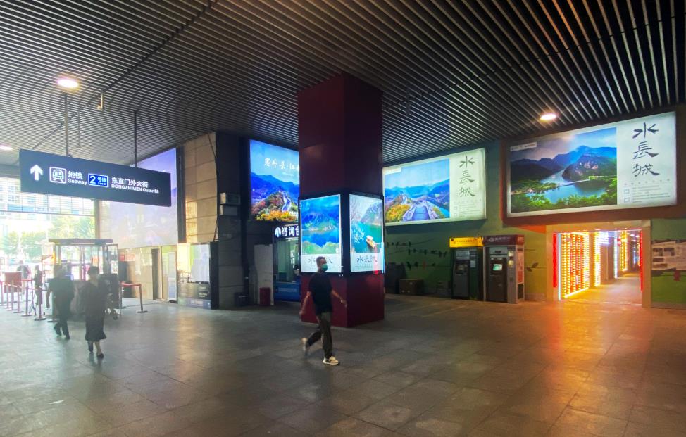 東直門交通樞紐站廣告-一層換乘區(qū)南廳出入口處-墻體燈箱廣告