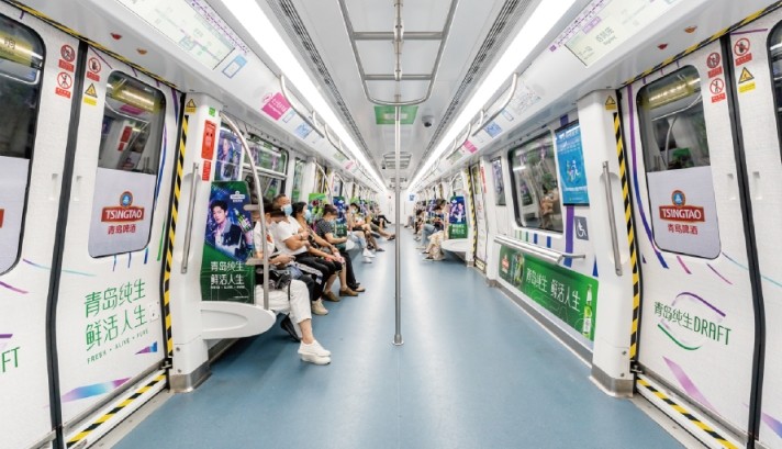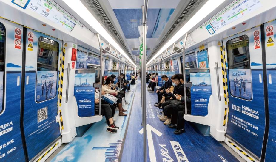 包含車廂看板、車窗貼、車門貼和車椅側(cè)貼,強曝光深觸達,實現(xiàn)地鐵乘客全覆蓋列車的包圍感空間,為乘客打造沉浸式互動體驗,品牌信息高效傳達,達到廣告深度傳播的效果。
