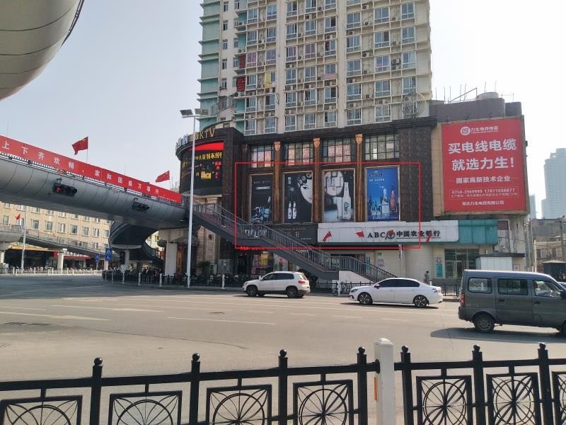 老河口中心城區(qū)武商購物廣場旁,廣告位正處于交叉口位置,人流車流匯集地段。