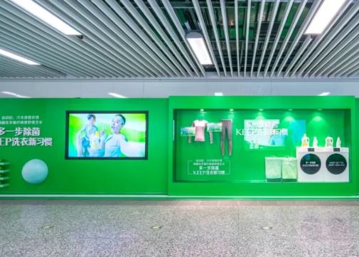 去年十月,洗護品牌滴露與運動app KEEP跨界合作,通過線下地鐵廣告關聯認知和互動體驗,有效提升消費者對滴露品牌的除菌認知。杭州的地鐵站內,滴露打造了「Dettol X Keep」運動主題的創意站廳,通過地鐵通道放置熱量感應屏,鼓勵消費者通過互動了解運動后的汗液會滋生細菌,傳遞「運動后需要多一步除菌」的核心信息。